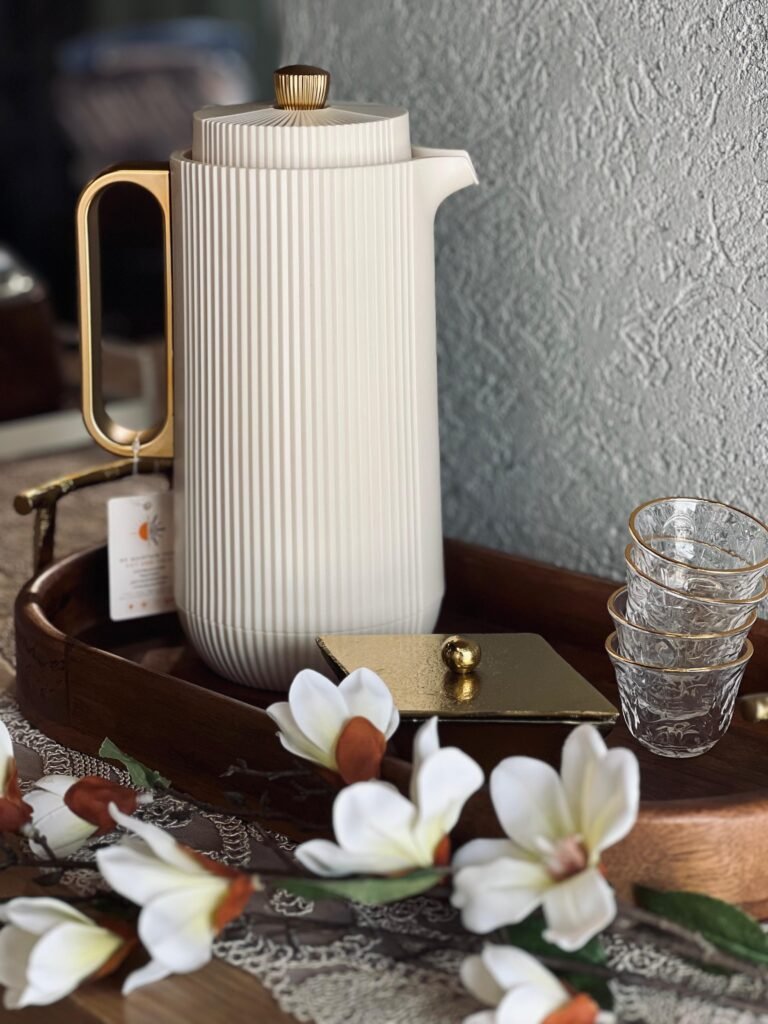 ثيرموس قهوة 1 لتر بيج مع يد ذهبي كبس طابة كريستال