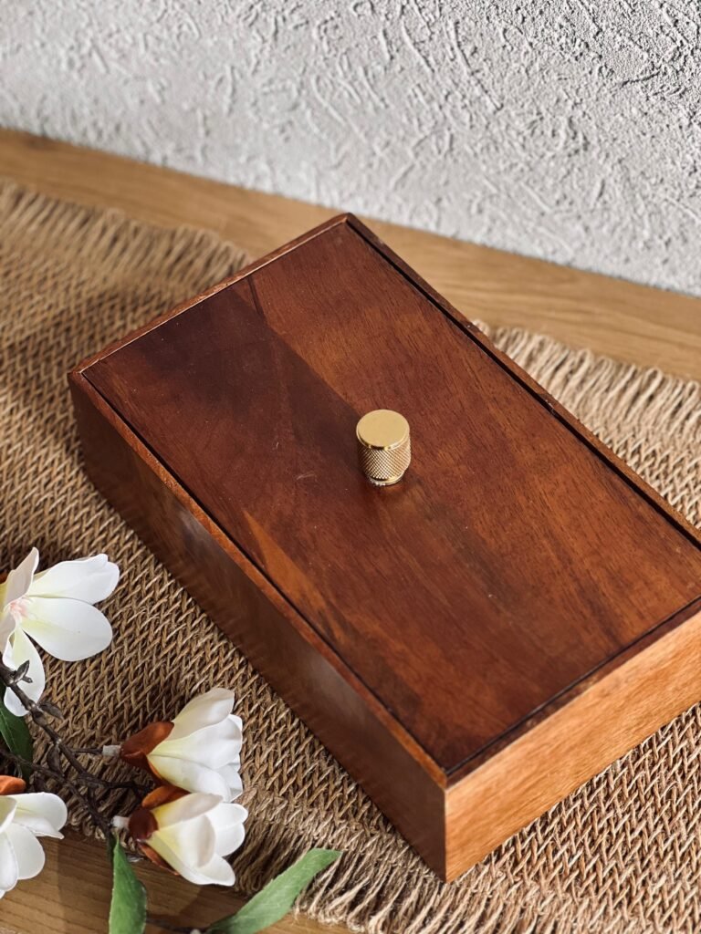 مضيفة مستطيل خشب هندي مع غطاء مسكة نحاس