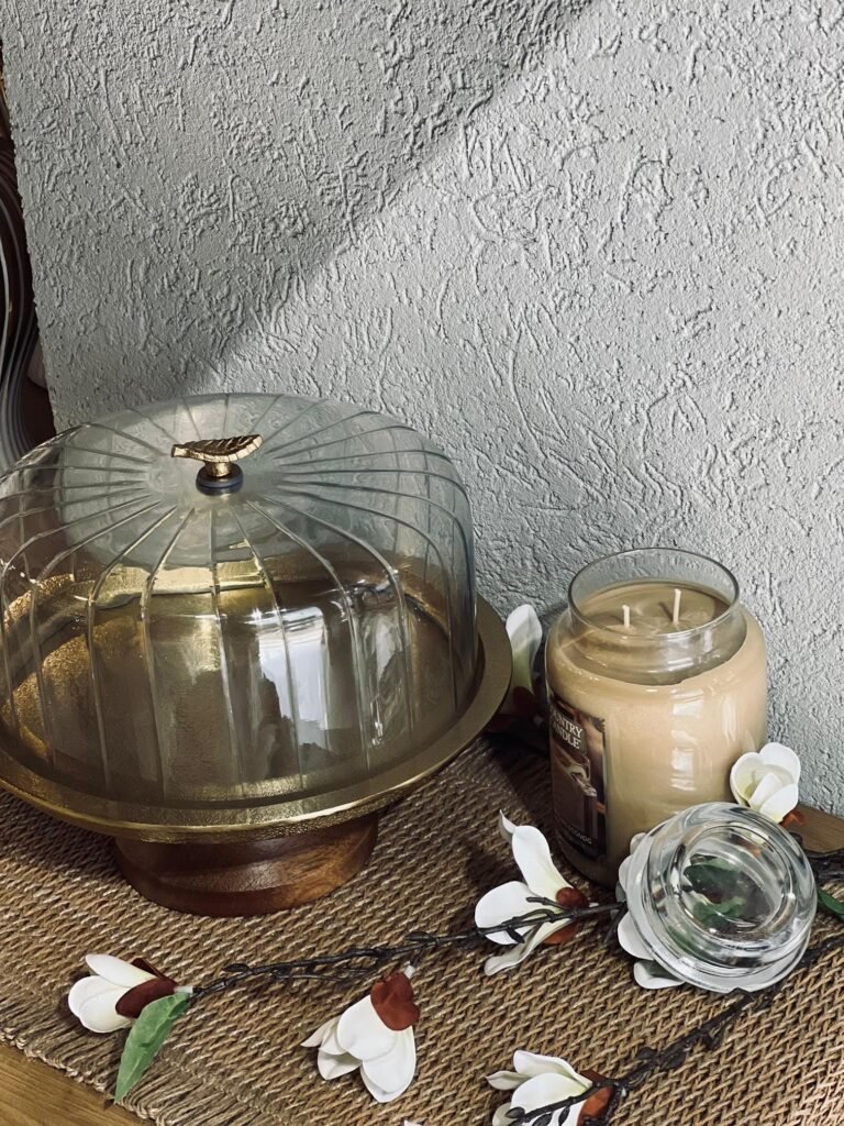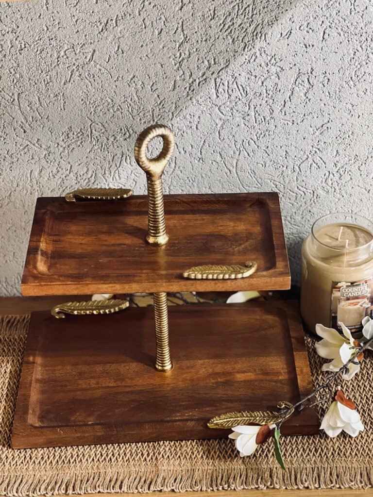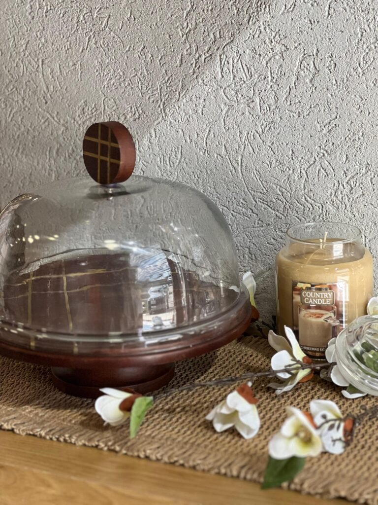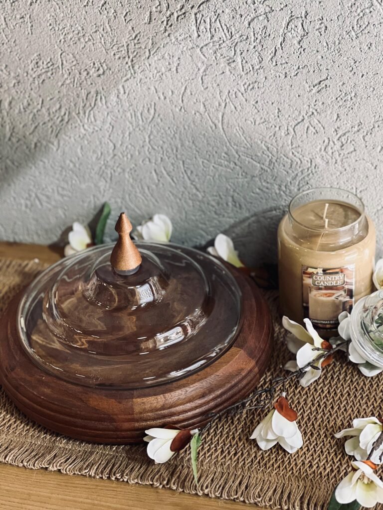 صحن حلويات خشب هندي مع غطاء زجاج دائري