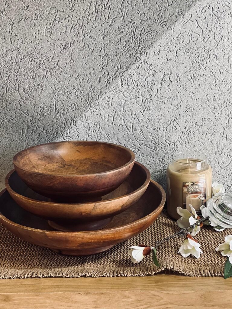 طقم جاط فواكة 3 قطع مدور خشب هندي