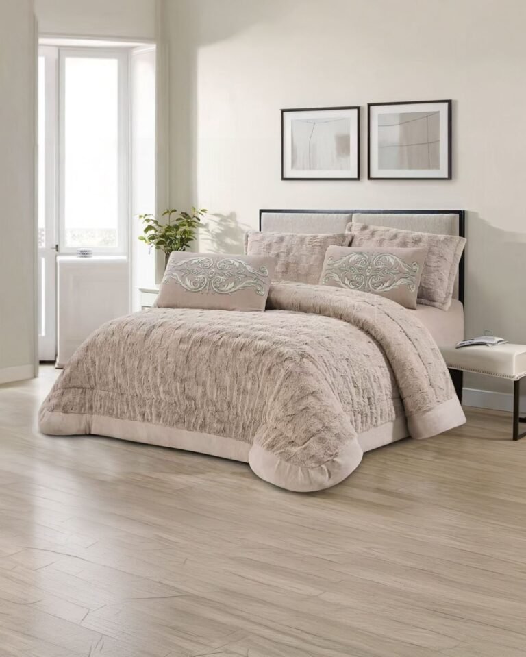 طقم لحاف شتوي كينج فرو آيفوري – OM07
