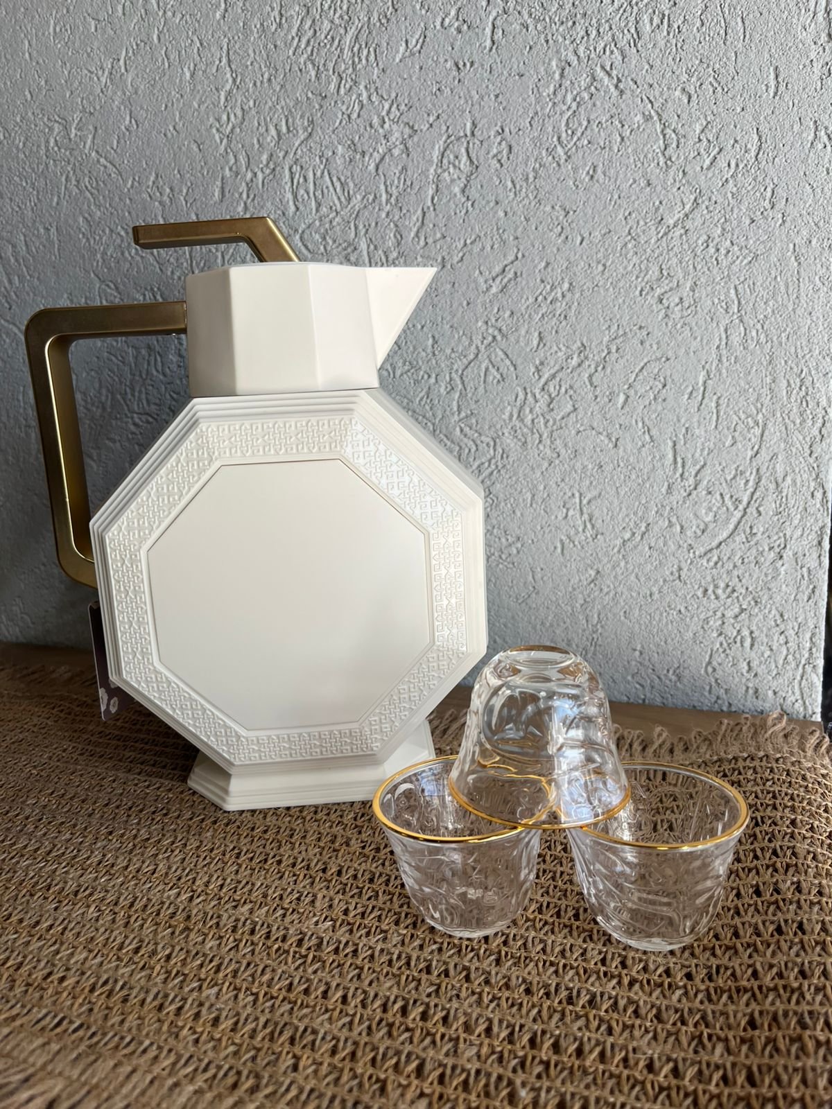 ثيرموس سداسي 0.9 لتر بلاستيك بيج مع يد وغطا ضغط ذهبي