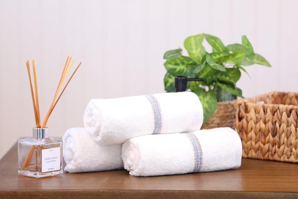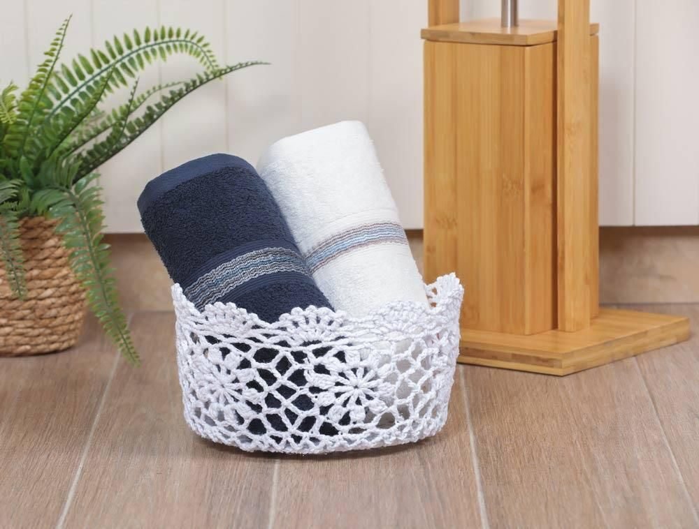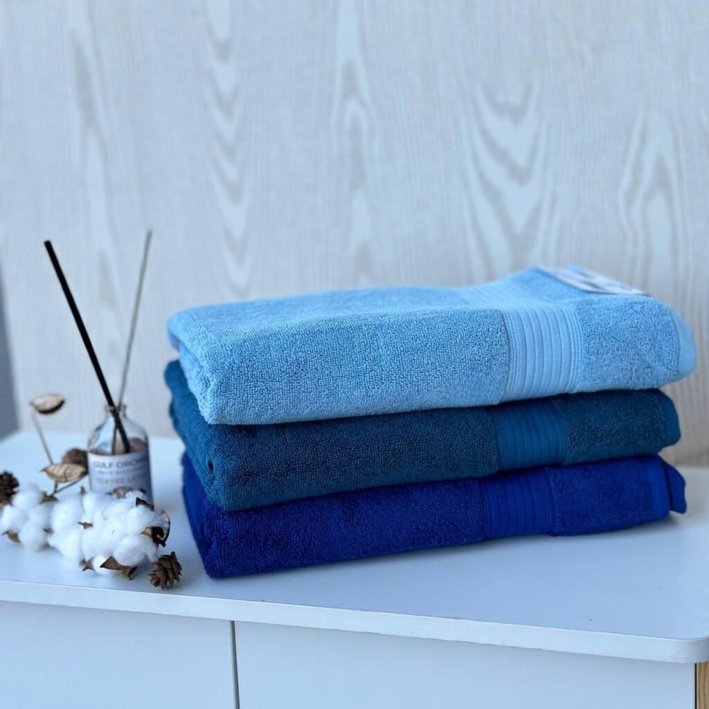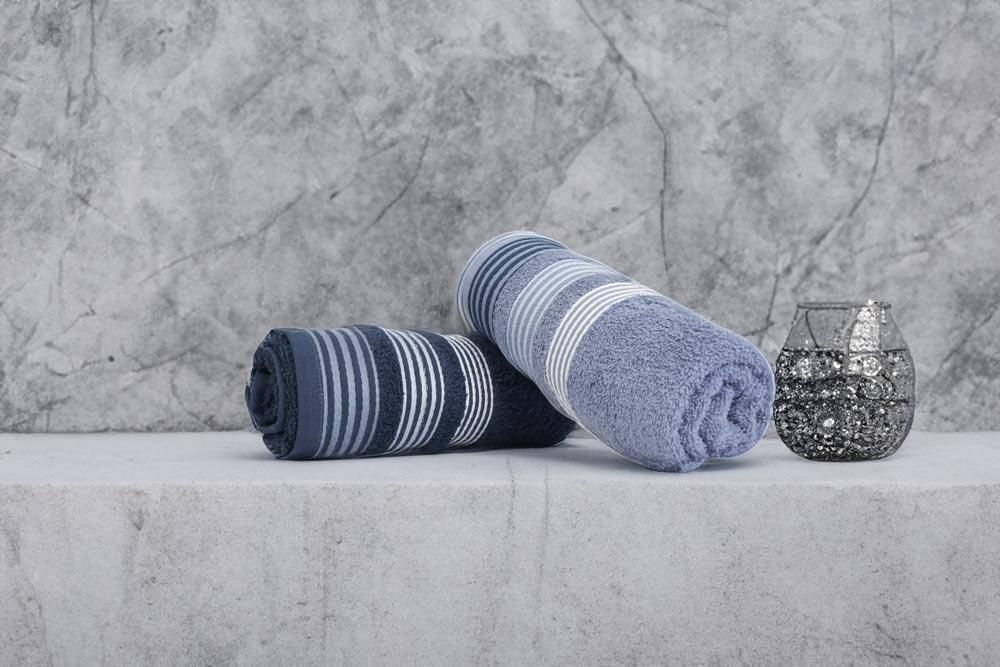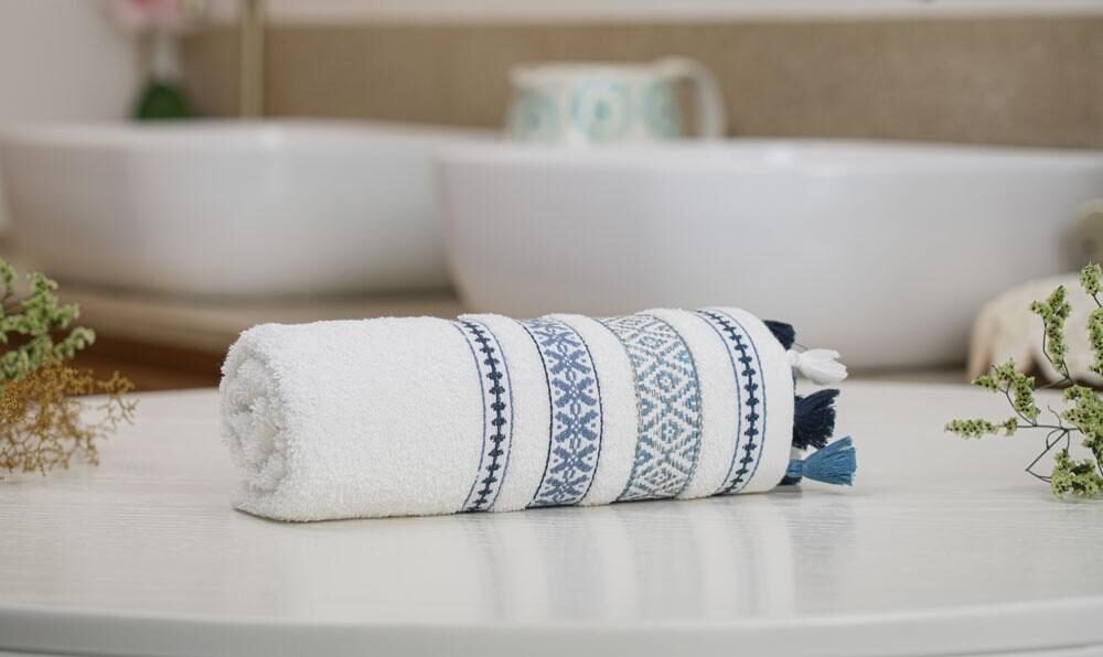 مناشف قطن 100% أبيض مطرز كحلي – Luxury Echo