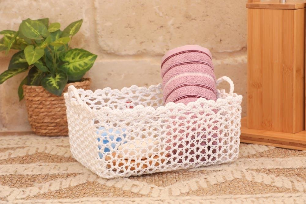 سلة بشاكير كروشيه مستطيلة مع يد – Yarnware