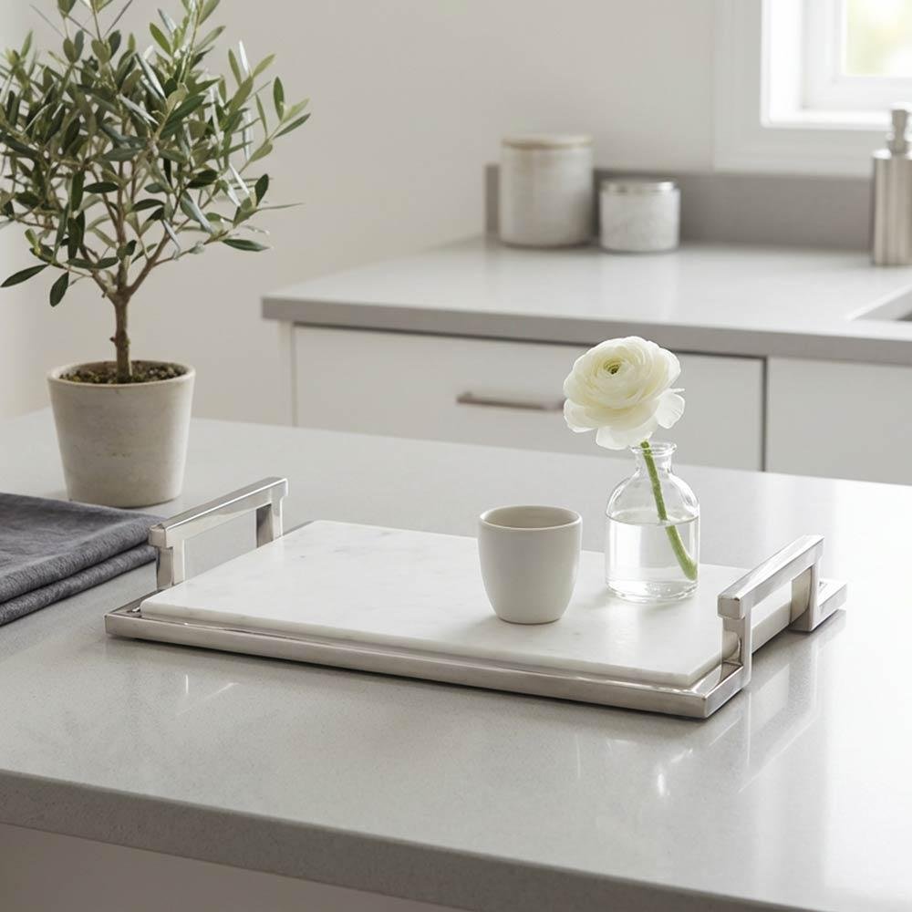 صينية مستطيلة رخام سيلفر مقاس : 31×18×5 سم \ كود 18411031 مقاس : 36×23×5 سم \ كود 18411032