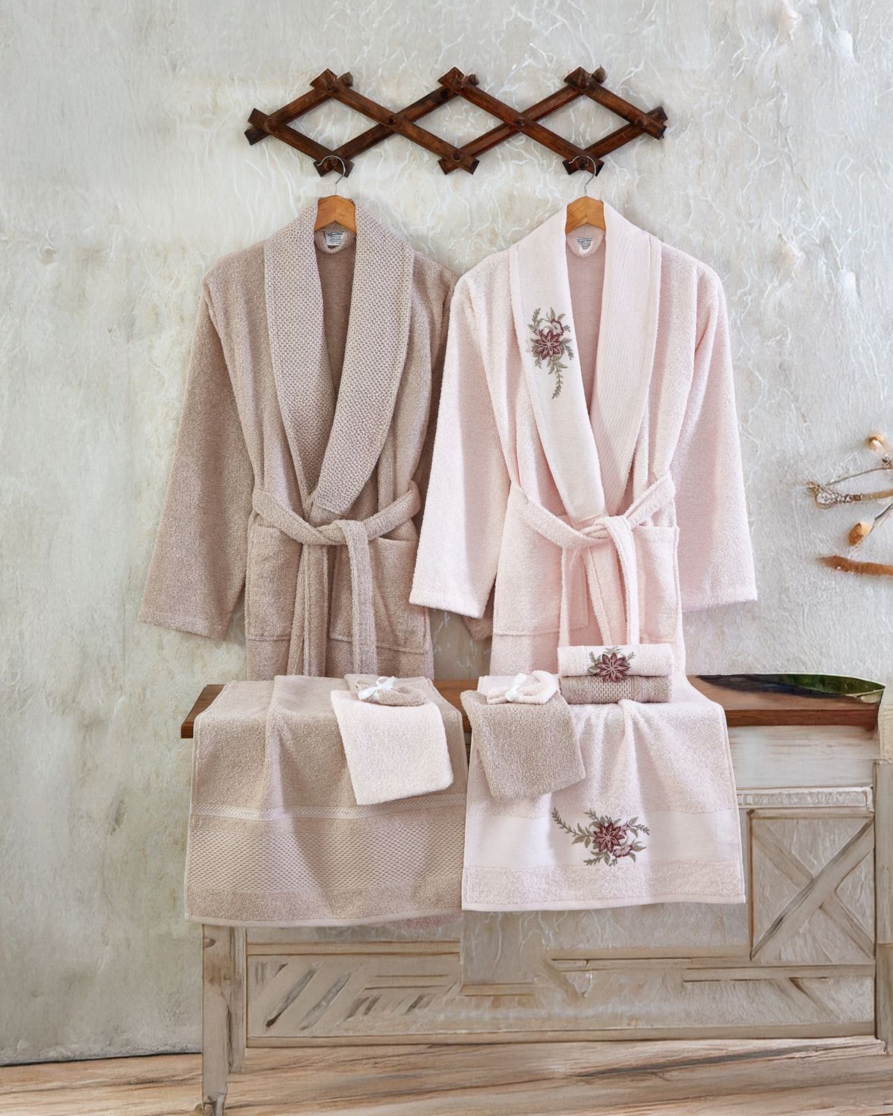 طقم ارواب حمام 10 قطع روب حمام عدد 2 بشكير مقاس 50 30 سم عدد 2 منشفة مقاس 50 90 سم عدد 2 ليفة حمام عدد 2 كيس لافندر عدد 2