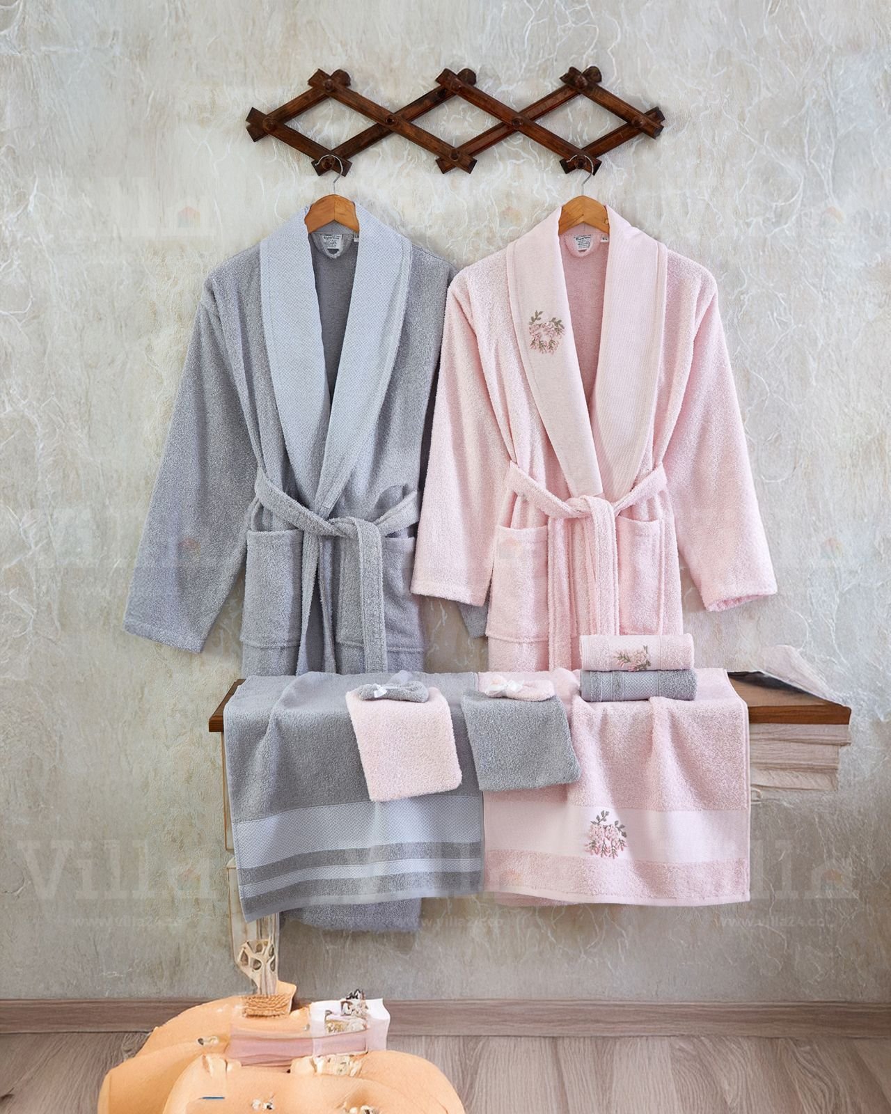 طقم ارواب حمام 10 قطع روب حمام عدد 2 بشكير مقاس 50 30 سم عدد 2 منشفة مقاس 50 90 سم عدد 2 ليفة حمام عدد 2 كيس لافندر عدد 2