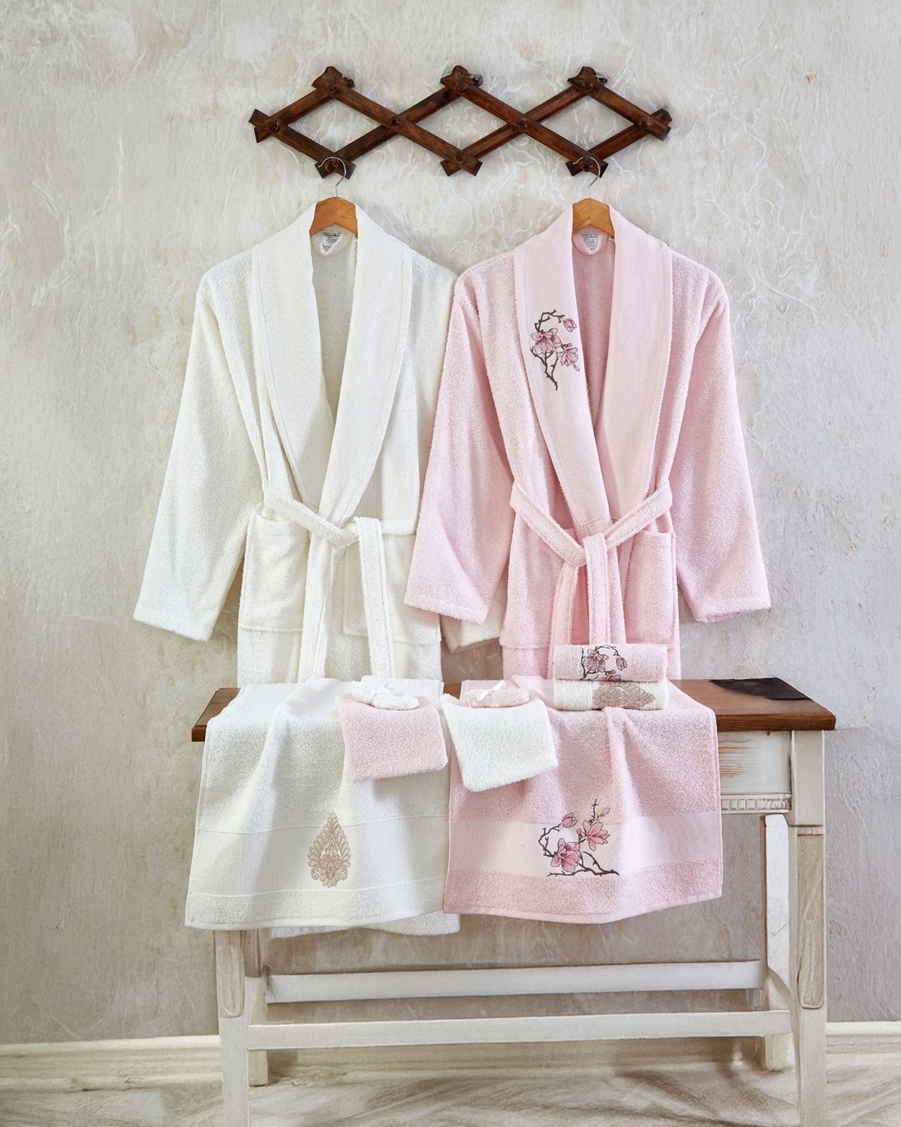 طقم ارواب حمام 10 قطع روب حمام عدد 2 بشكير مقاس 50 30 سم عدد 2 منشفة مقاس 50 90 سم عدد 2 ليفة حمام عدد 2 كيس لافندر عدد 2