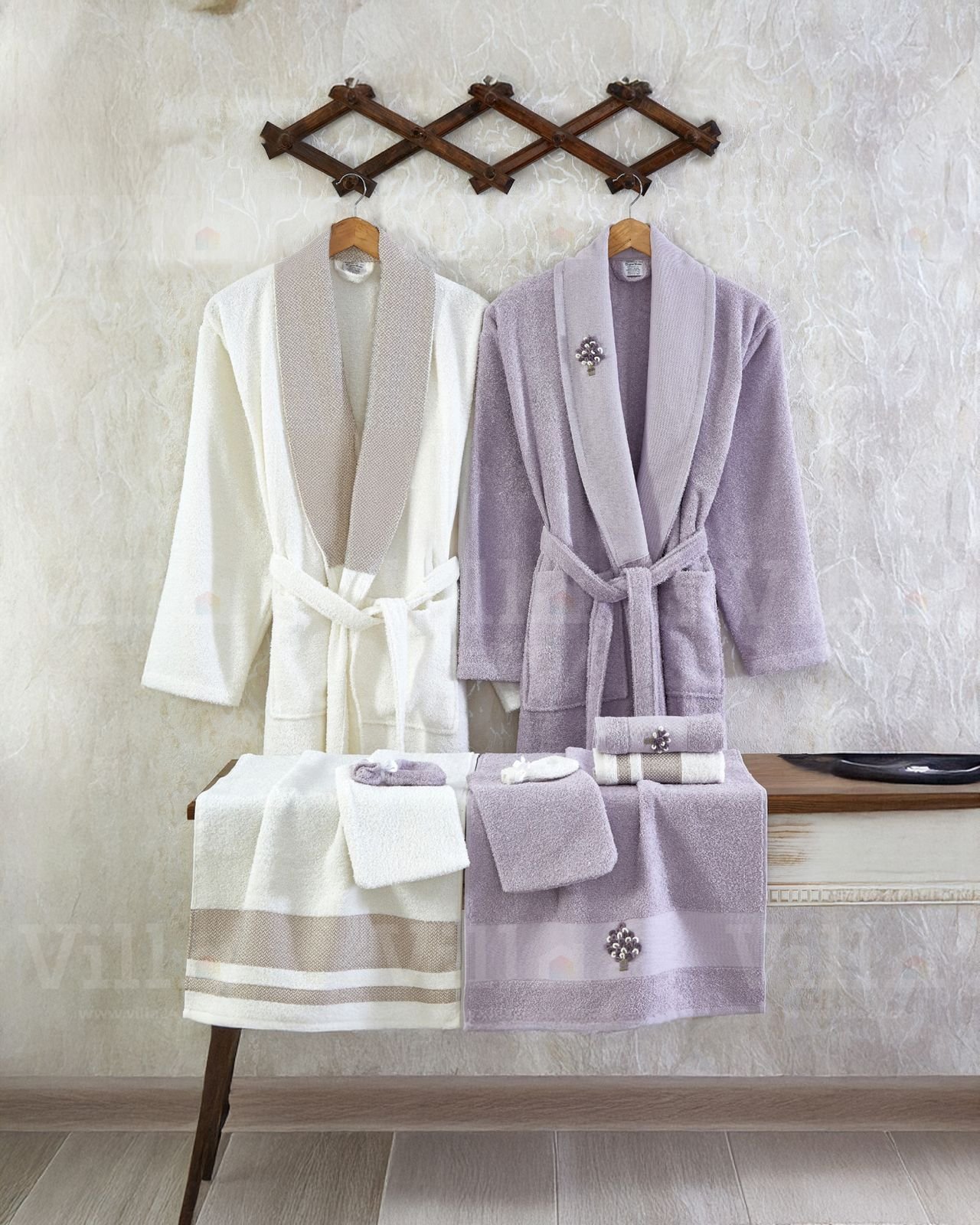 طقم ارواب حمام 10 قطع روب حمام عدد 2 بشكير مقاس 50 30 سم عدد 2 منشفة مقاس 50 90 سم عدد 2 ليفة حمام عدد 2 كيس لافندر عدد 2
