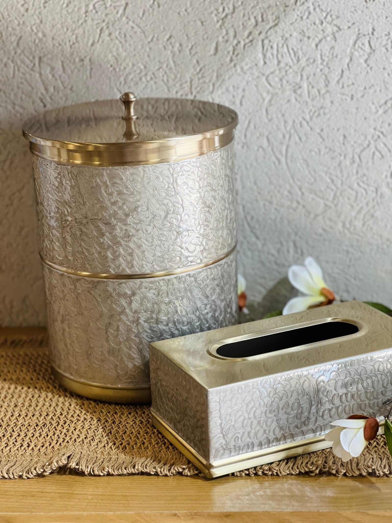 طقم سلة مع بكيت محارم سكني مع ذهبي
