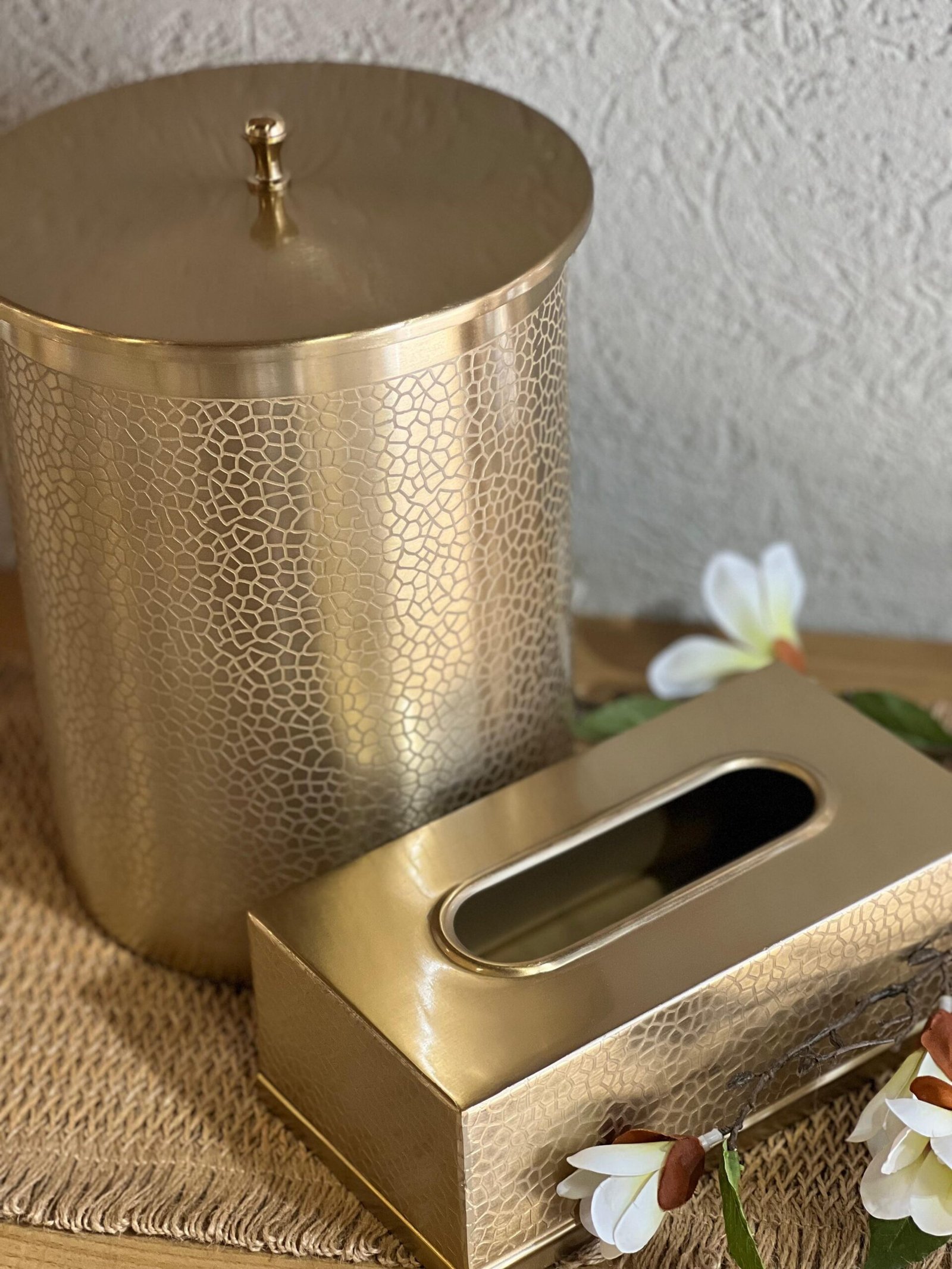 طقم سلة مع بكيت محارم مدور ذهبي