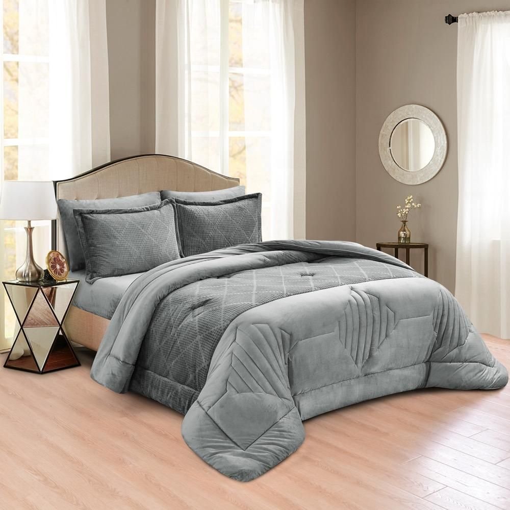 طقم لحاف فرو ناعم رمادي -VICTORIA