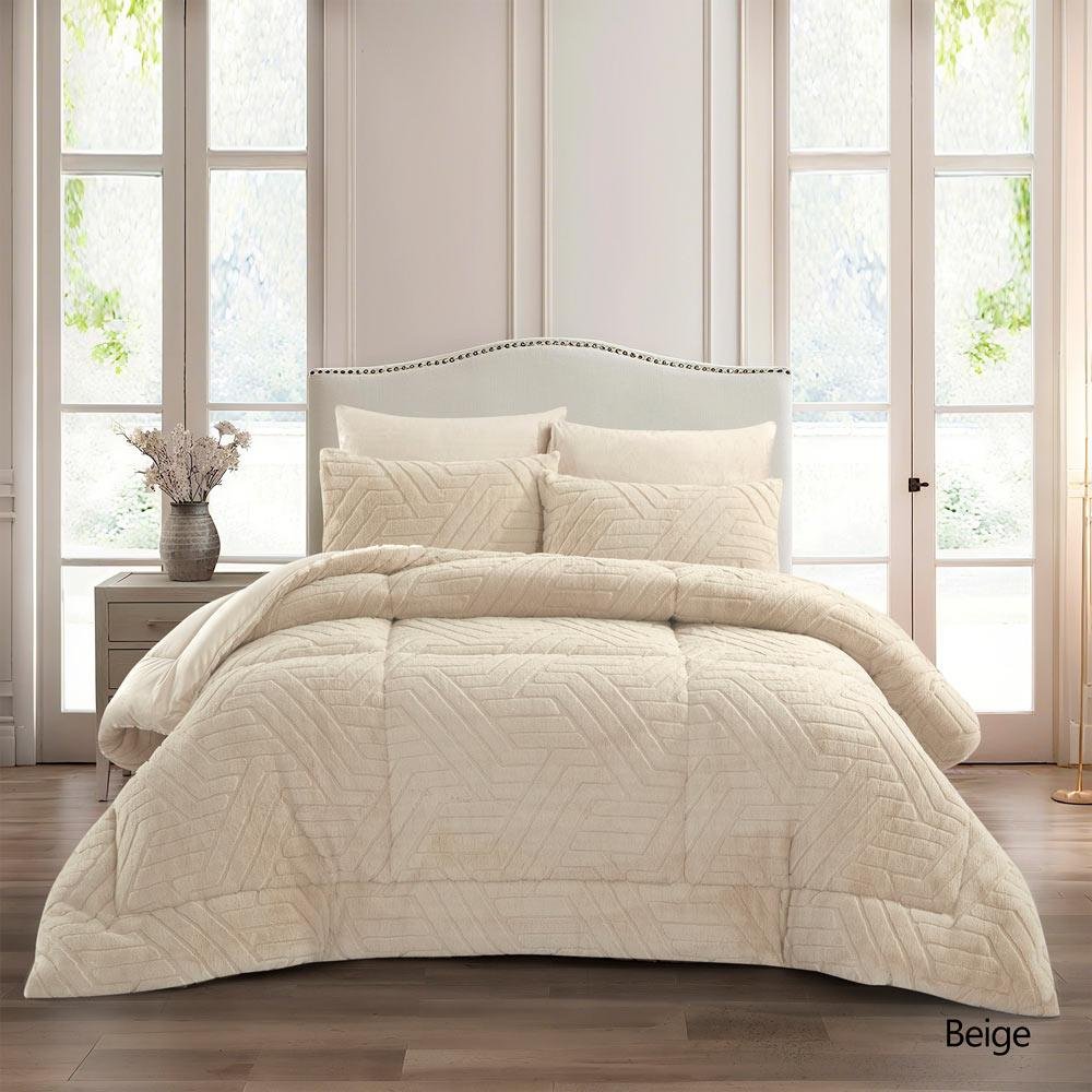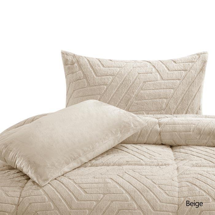 طقم لحاف شتوي بيج مخمل – RUBIK