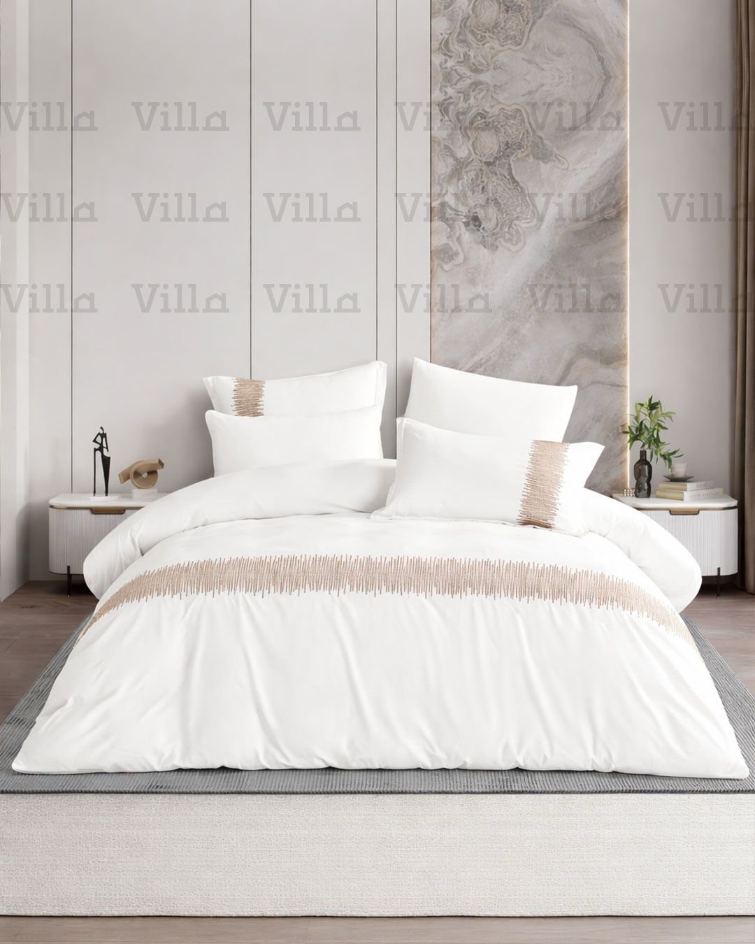 طقم لحاف كينج 7 قطع أبيض مع بيج - K-Zen 02