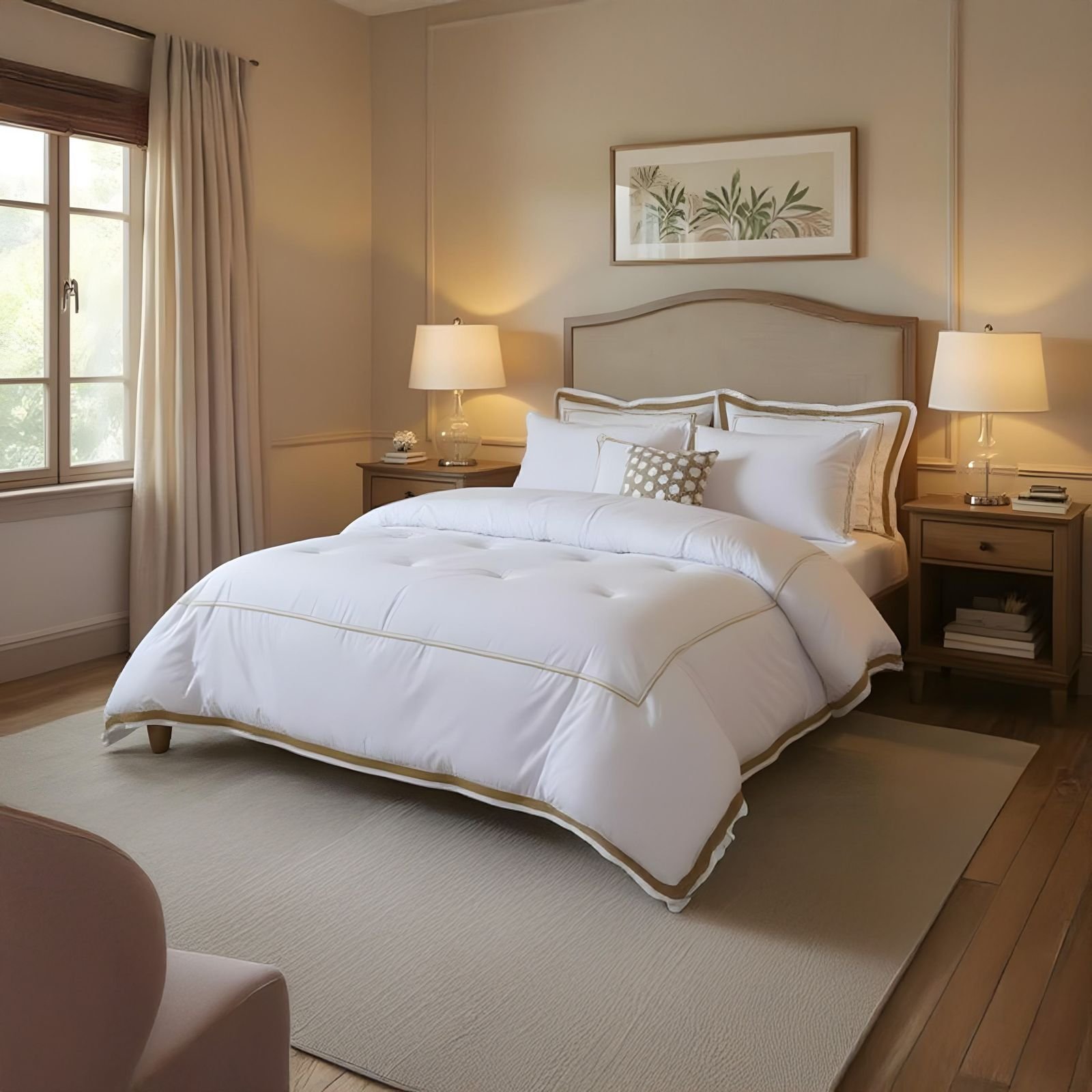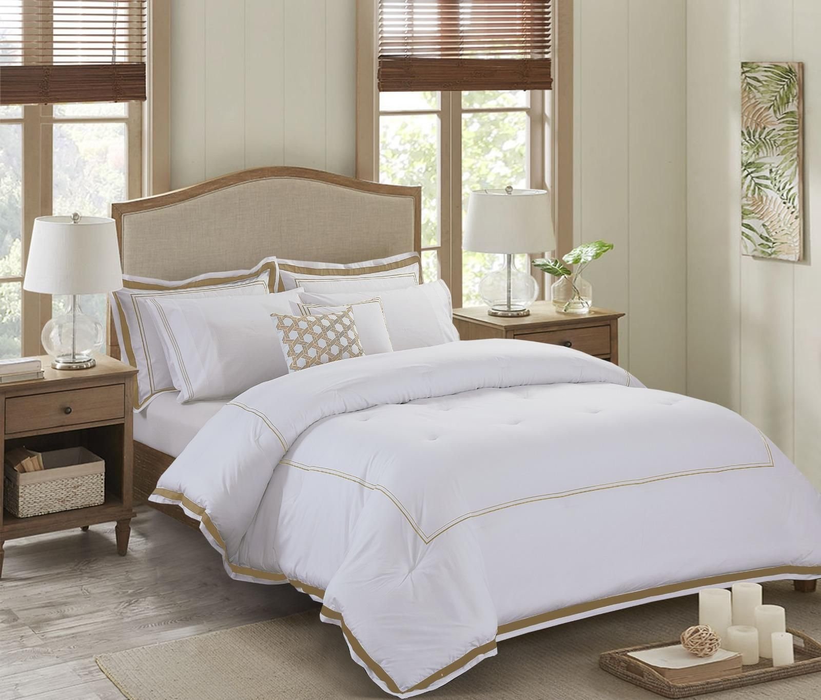 طقم لحاف قطن 100% كينج ابيض وذهبي – OASIS