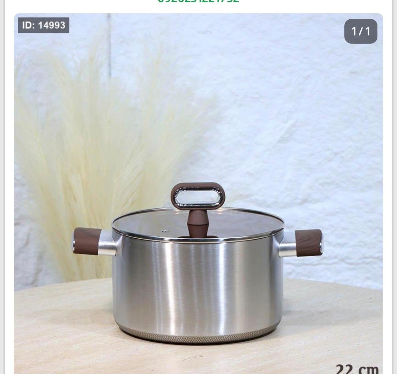 طنجرة ستانلس وجه تيتانيوم مع غطاء زجاجي عسلي ويد مقبض خشبي