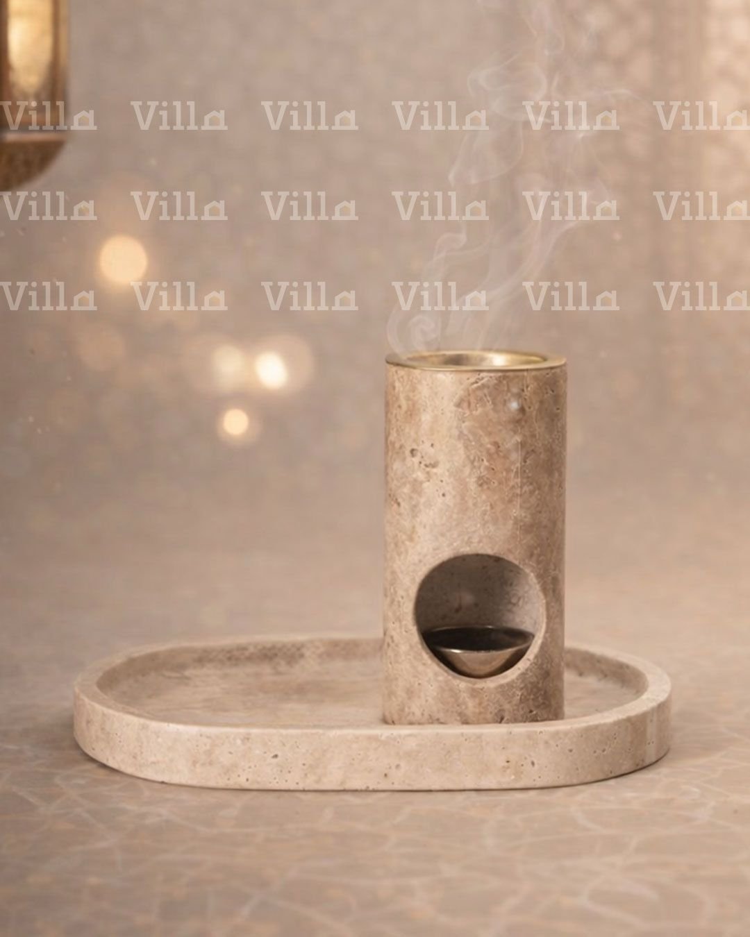 مبخرة من حجر الترافرتين الطبيعي مع صينية