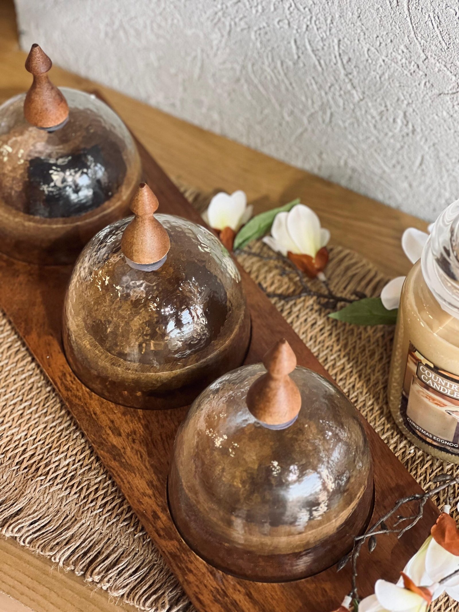 مضيفة 3 عين خشب هندي مدور مع غطاء زجاج