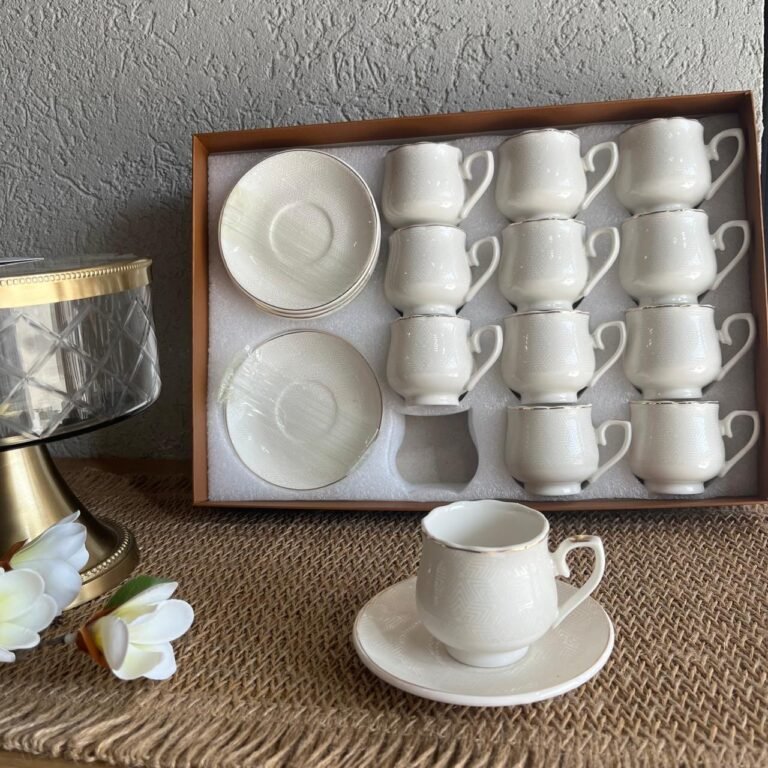 طقم فناجين قهوة 12\12 بورسلان أبيض